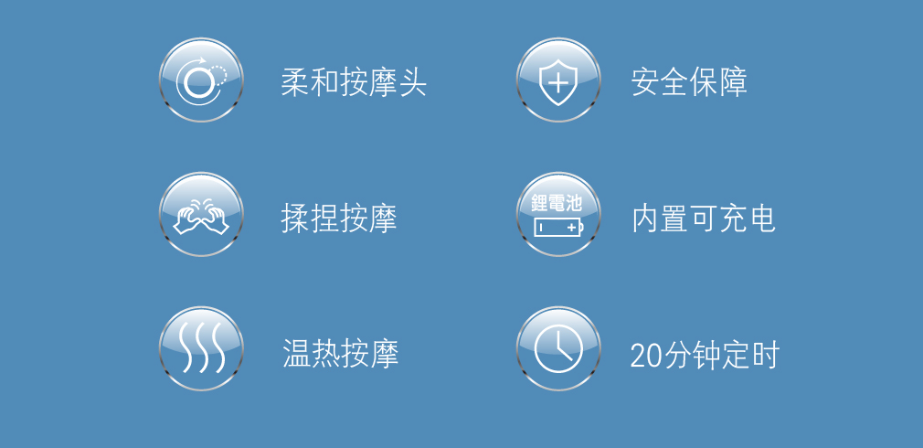 ◆四颗柔和按摩头,同时设置加热及揉捏功能,让按摩更加舒适到位。