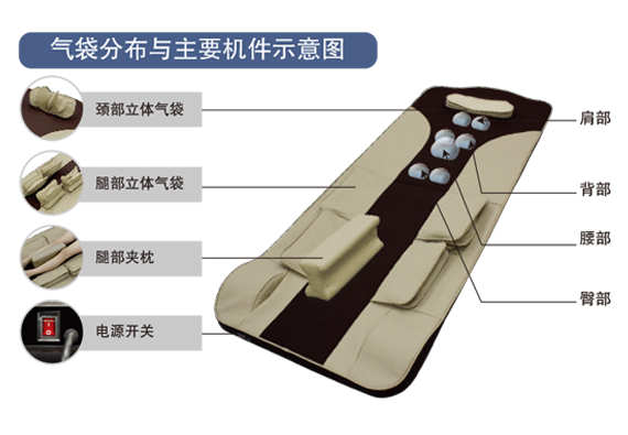 EMK-608 provides comprehensive air-bags location, delivering the comfortable massage to neck, shoulder, back, waist, buttocks and feet.